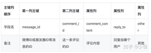 如果选择了Tablestore,那么“评论表”设计结构如下: