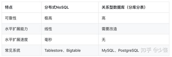 - 对于可靠性,分布式NoSQL的可靠性要高于关系型数据库,这个可能有违很多人的认知。主要是关系型数据库发展很长时间了,且很成熟了,数据放在上面大家放心,而分布式NoSQL数据库发展晚,使用的并不多,不太信任。但是,分布式NoSQL需要存储的数据量更多,对数据可靠性的要求也加严格,所以一般都是存储三份,可靠性会更高。目前在一些云厂商中的关系型数据库因为采用了和分布式NoSQL类似的方式,所以可靠性也得到了大幅提高。