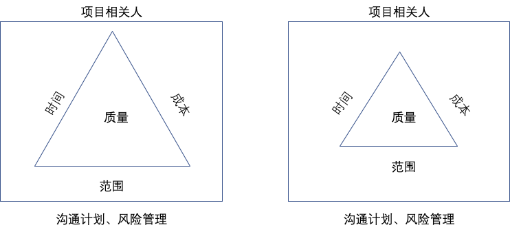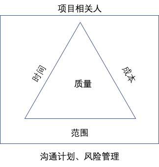 项目背景:端产品全面升级为云产品。 需求来源:大boss,其实也是一种趋势。生死存亡之际,需要做到1个月结束项目。 接下来进入会议阶段,会议目标:相关人分配、项目任务分解、时间规划、成本预算、沟通计划、风险管理、质量管理。 为了便于理解和记忆,画如下概念图,顶端要知道谁参与这个项目,接下来才有相关人会议。而时间、成本、任务范围构成一个铁三角,铁三角决定质量。底部核心在于沟通与风险的管控。