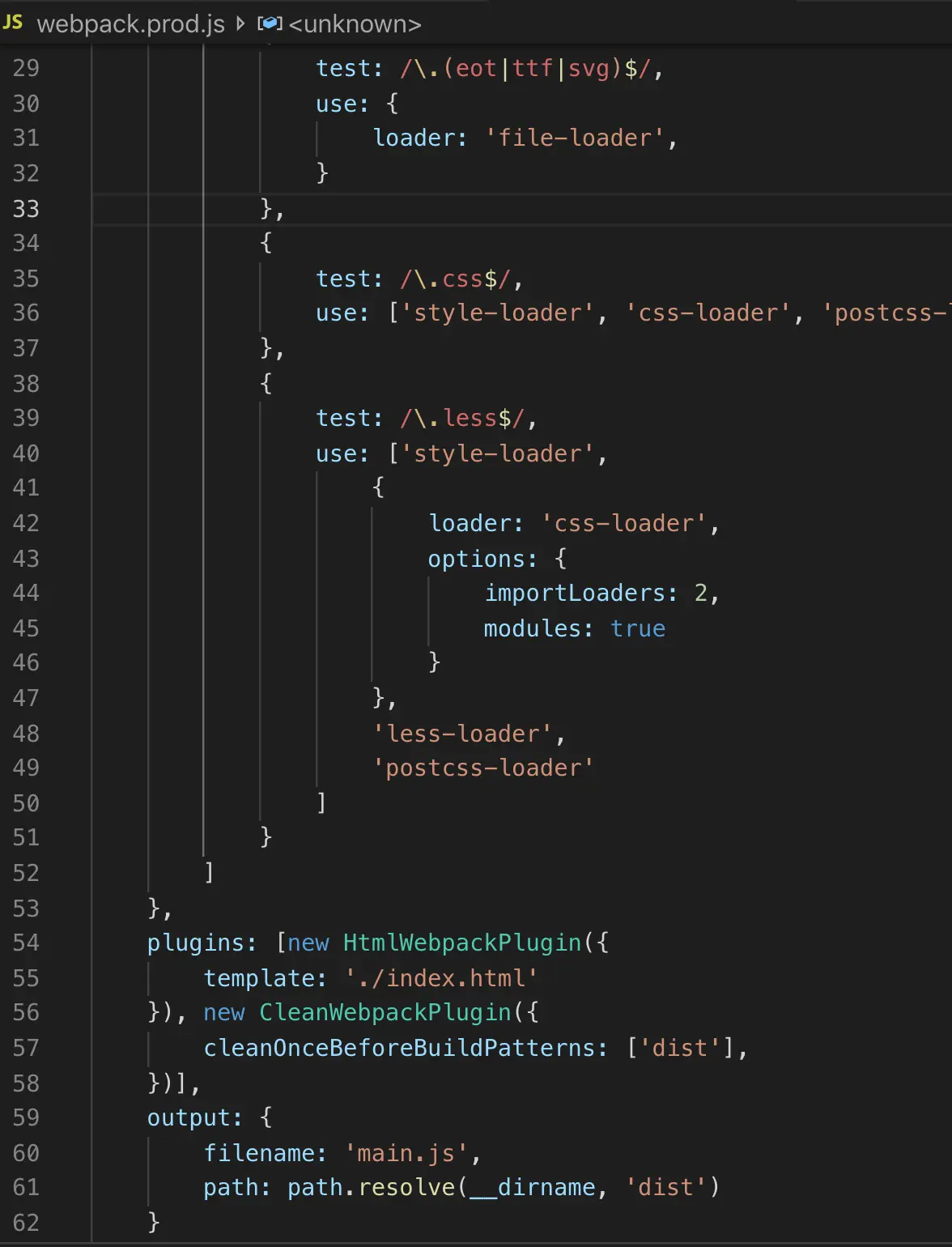 root //由于把webpackConfig文件放进build文件夹中了,webpack会认为bunild已经是最顶级的目录了,所以在配置时是不能写 ..dist 的,但是clean-webpack-plugin提供了一个root的配置,也就是路径的配置,这样就可以删除与bunild同级的dist文件夹了。