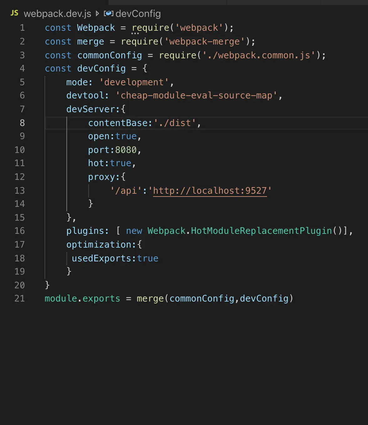 --config webpack.dev.js //启动配置项为 webpack.dev.js文件。