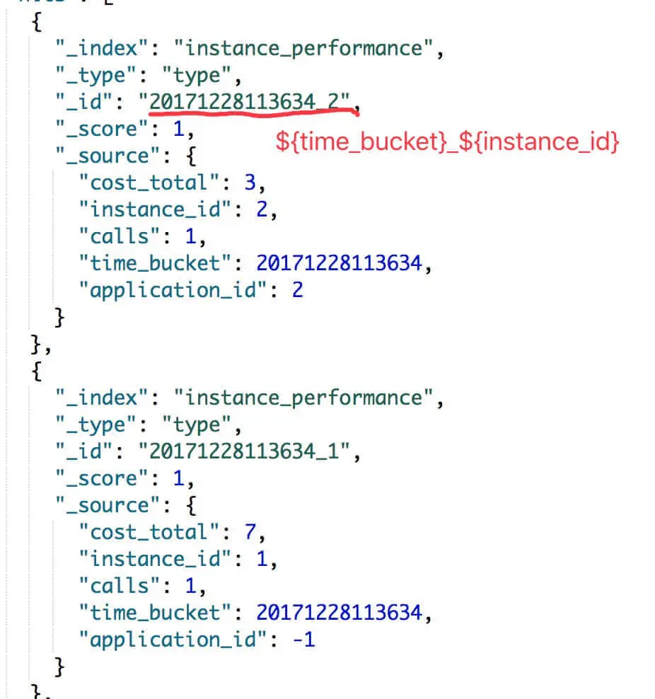 org.skywalking.apm.collector.storage.es.dao.InstPerformanceEsPersistenceDAO,InstPerformance 的 EsDAO 。- 在 ES 存储例子如下图: