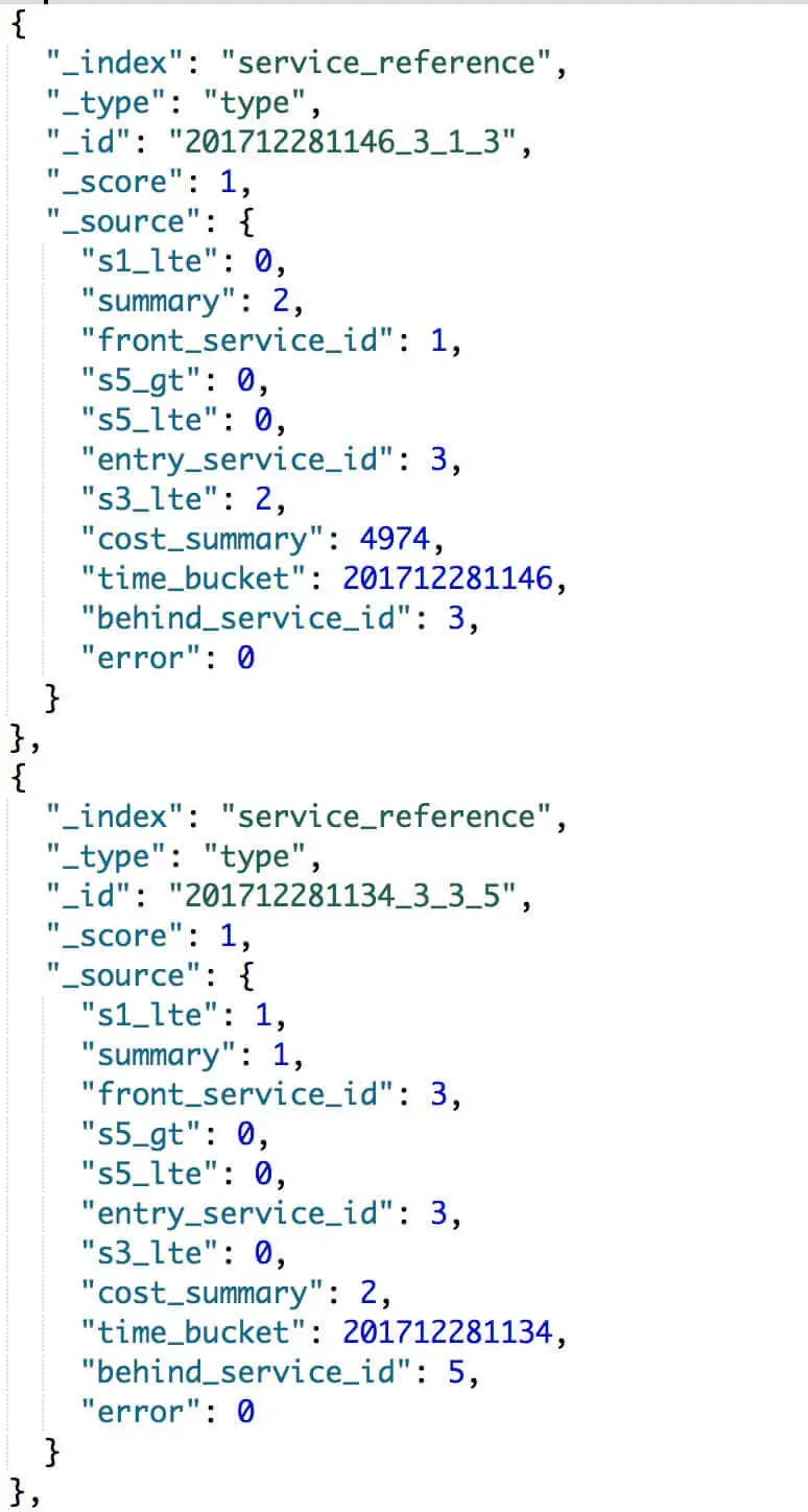 org.skywalking.apm.collector.storage.es.dao.SegmentCostEsPersistenceDAO,SegmentCost 的 EsDAO 。- 在 ES 存储例子如下图: