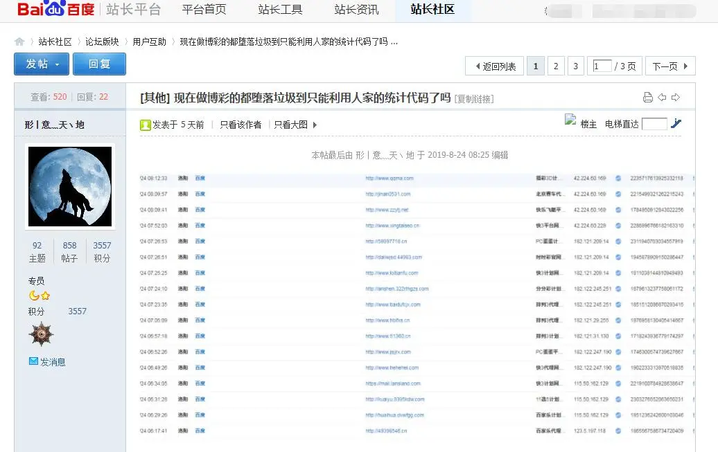 最近一直有站长和我反应他的百度统计数据很不对,首先大量的不明IP访问服务器,更可恶的是百度统计里的数据都不是他的网站的,这一点百度也刚注意到,有人在恶意攻击百度服务器,给百度假的信息,让用户网站既遭受干扰有被打击.