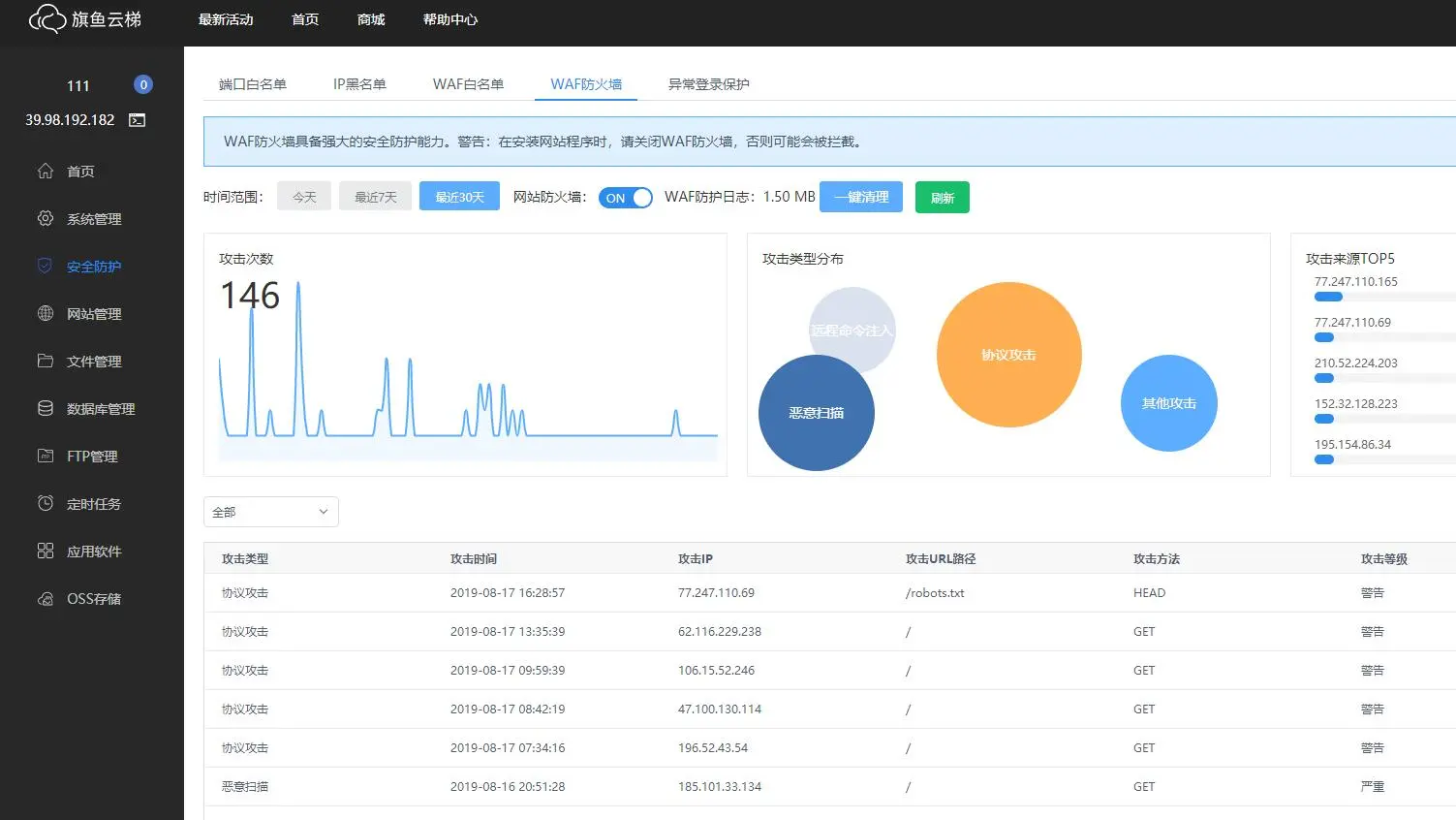 旗鱼云梯有完善的服务器安全防护,可以拦截恶意登录攻击等问题,帮助你解决服务器和网站的攻击,把自己的IP加入WAF白名单,然后只有你能够更改网站数据,其他人只能够访问网站,任何的恶意修改和攻击都会被拦截.