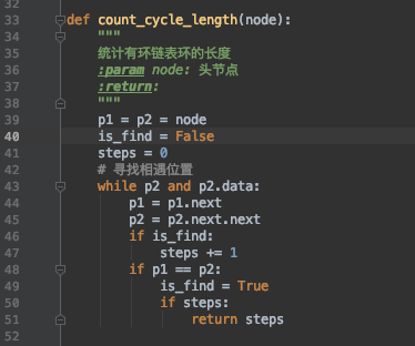 扩展: 如果链表有环,如何求出环的长度? 当两个指针首次相遇,证明链表有环的时候,让两个指针从相遇点继续循环前进,并统计出前进的循环次数,知道两个指针第二次相遇,此时,统计出来的前进次数就是环长。