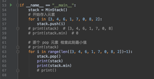 - 当调用getMin方法时,返回栈B的栈顶所存储的值,这也是栈A的最小值