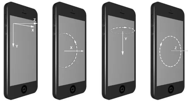 由图所见,绕Z轴的旋转等同于之前二维空间的仿射旋转,但是绕X轴和Y轴的旋转就突破了屏幕的二维空间,并且在用户视角看来发生了倾斜。