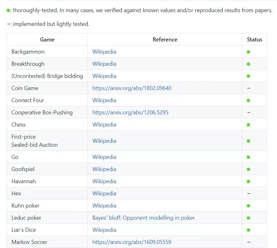 OpenSpiel 是一个综合性的强化学习游戏测试平台,包括了多种游戏环境和算法,用于强化学习研究或搜索策略的研究。