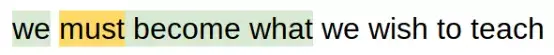 第一步:黄色高亮单词作为输入,绿色高亮单词为输出。窗口规格为2个单词。将首单词作为输入词。