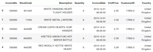 warnings.filterwarnings('ignore')df = pd.read_excel('Online Retail.xlsx')df.head()以下是对于该数据集某些领域的描述: