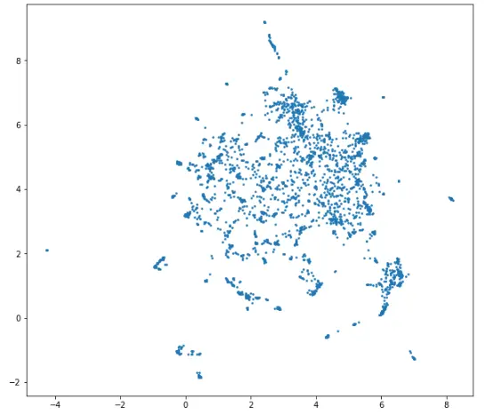 将通过UMAP算法把产品嵌入维度从100减少至2。这在维度减少中的应用十分常见。