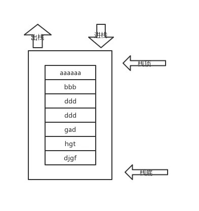 - 栈:先进后出,后进先出