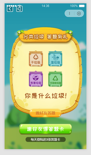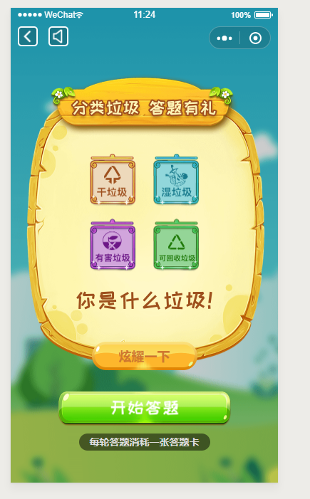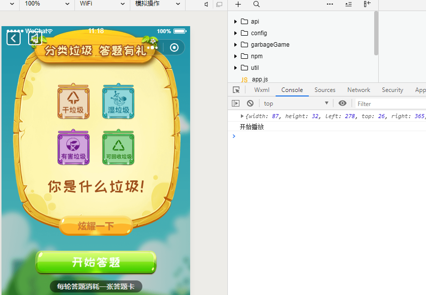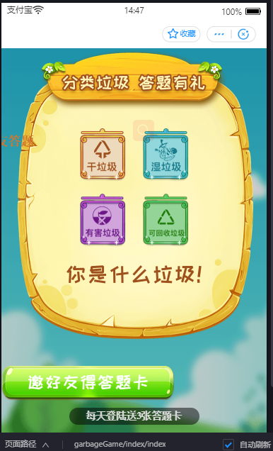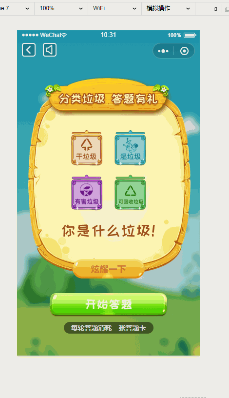 这里我使用了一个简单的垃圾答题小程序来尝试,其中使用了自定义组件,以及自定义导航栏,未使用分包等其他特性,确保项目是正常,转换前玩了下,没有任何报错等问题。