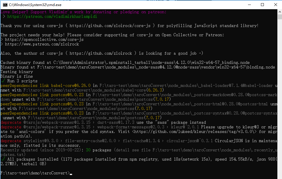 在taroConvert目录下执行 npm install 我使用的是cnpm