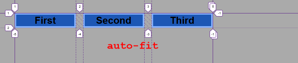 为了展示 auto-fill 和 auto-fit 的不同点,我们将 7 个项目删减为 3 个。