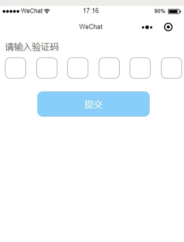 上图的效果在他问问题之前我就想到了,起码静态页面我三下五除二的就写完了,可是在真正写逻辑交互的时候出现了很多的问题。尽管微信小程序的input有很多的功能,但是在真机调试的时候,最大的问题就是,切换input的时候,键盘一直在打开收回。我们都知道,在移动端输入验证码的时候,输入法是不会收回的,但是我们这里用了6个输入框,在失去focus的时候,键盘是自动收回的。为了解决这个问题,我重新思考了一下。