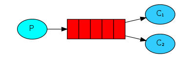 传递一个消息到多个消费者中,借助该模式可以发布的消息将被广播给所有接收者。