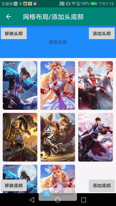 - 随意添加头部底部(线性,网格,瀑布)