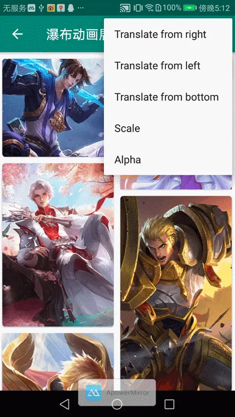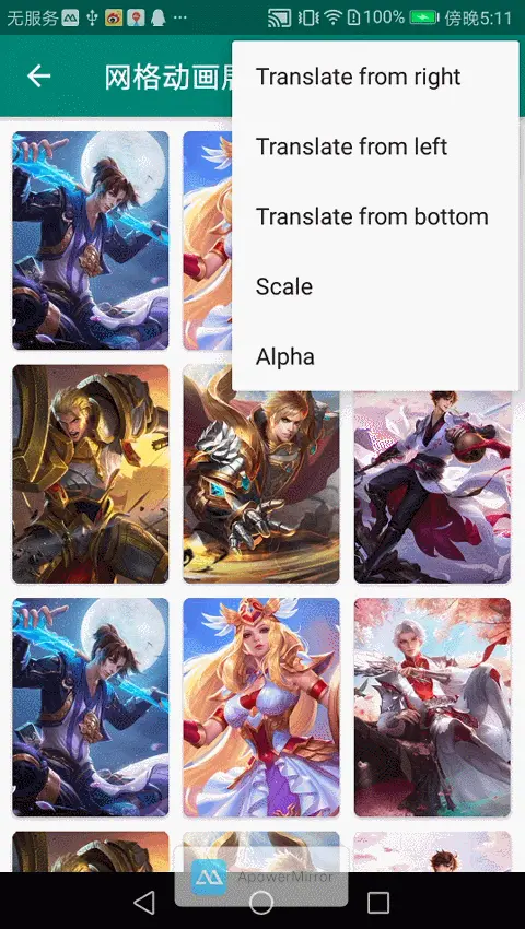 需要注意的是,因为在onBindView里处理动画,所以必须在绘制前调用adapter.showItemAnim(AnimationType.TRANSLATE_FROM_RIGHT);