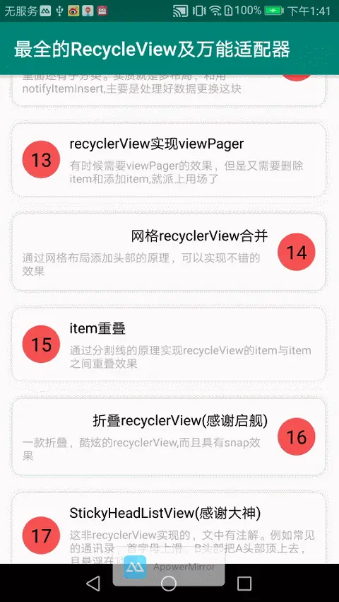 大致思路是重写LayoutManager。demo里已经放了大神连接,大家可以去学习学习,太强了。超越了我对recyclerView的认识。