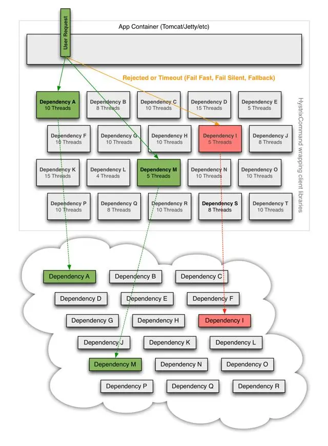Hystrix依赖的隔离架构,如下图: