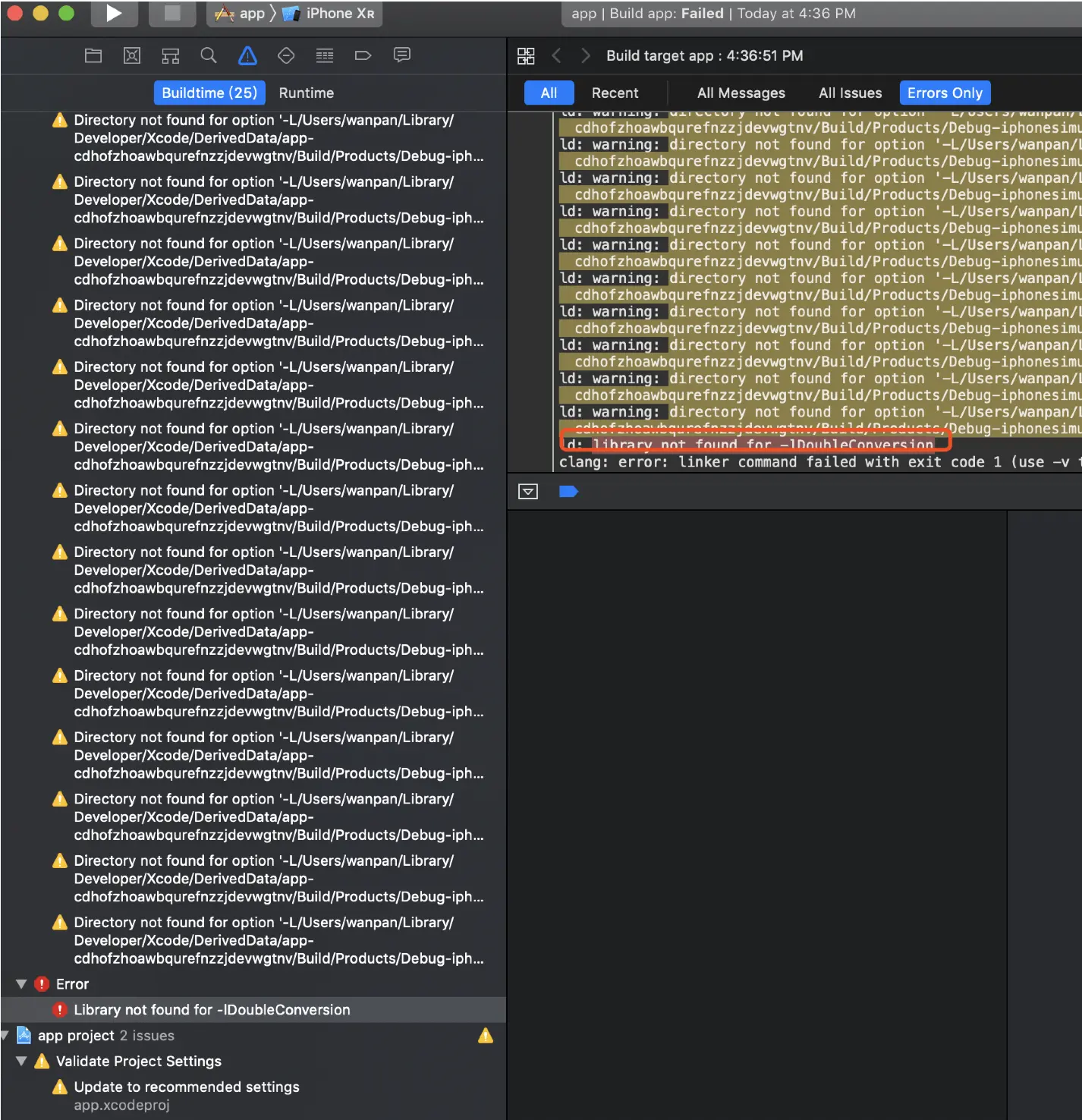ld: library not found for -lDoubleConversion
