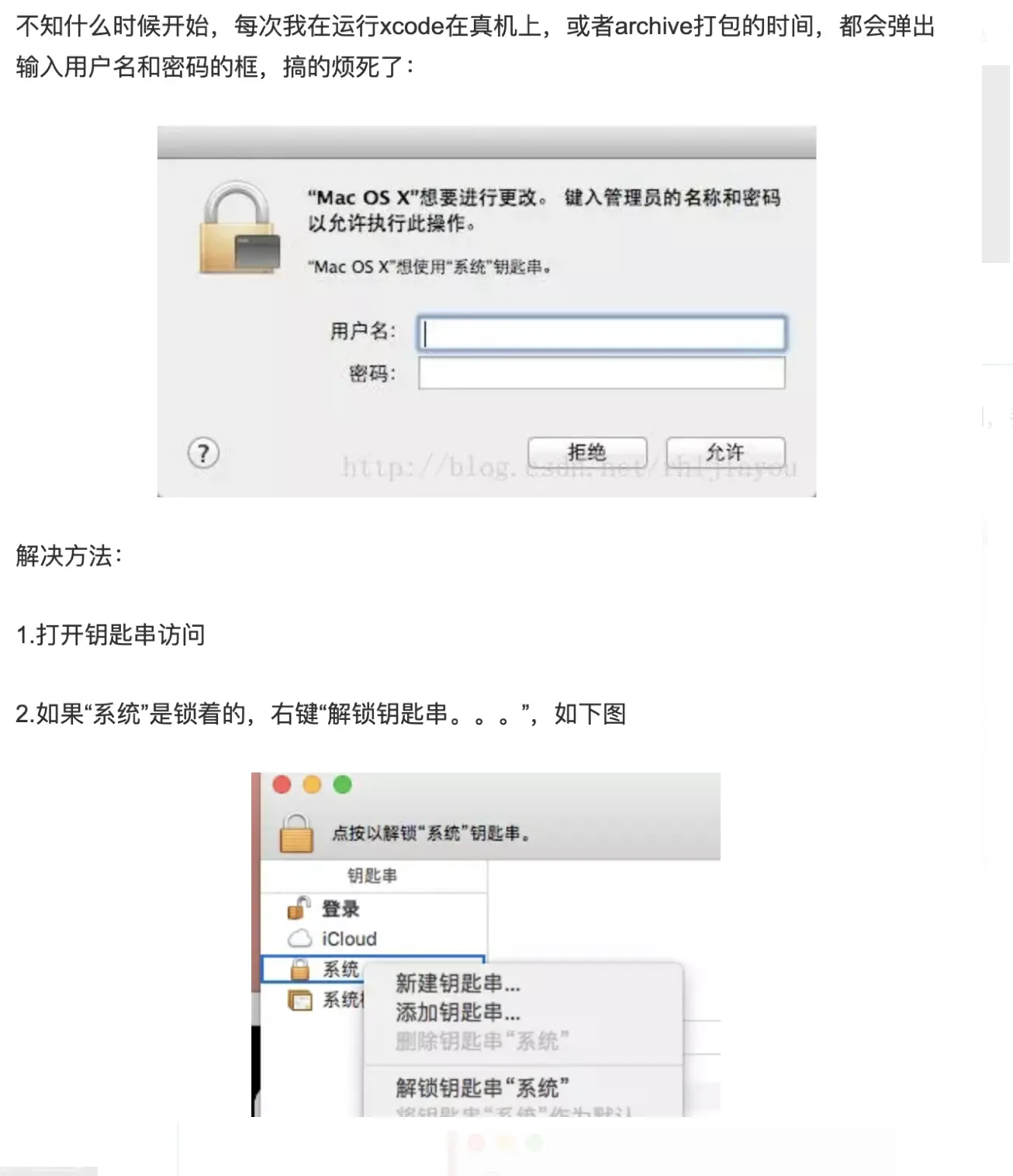 在xcode中打包或者真机调试时调用相关证书每次都要输入账号密码