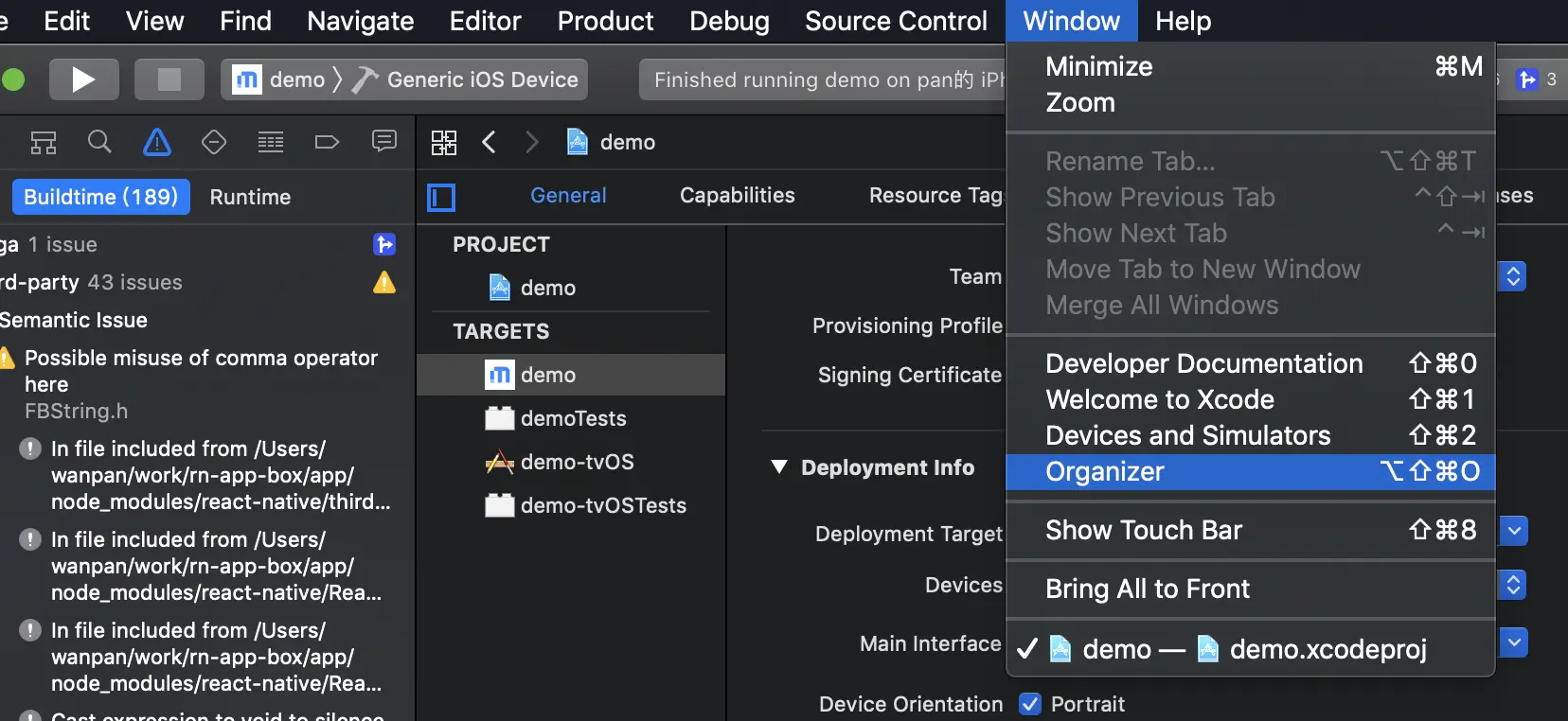 archive打包完后不小心关闭了,如果再次打开? 点击xcode中window -> organizer
