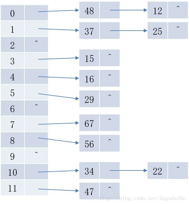 的场景,可以看到48 % 12 = 12 % 12 = 0,形成了一个链表。