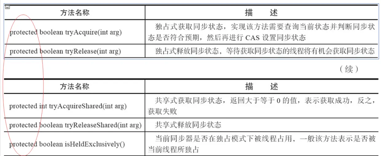 2.AQS采用了模板方法进行设计,AQS的protected修饰的方法需要由继承AQS的子类进行重写实现,当调用AQS的子类的方法时就会调用被重写的方法。