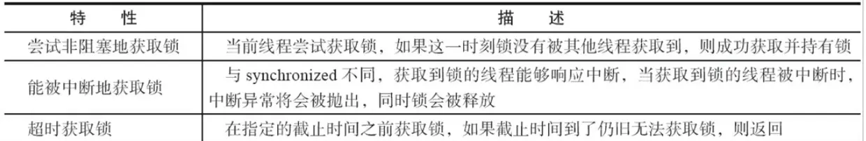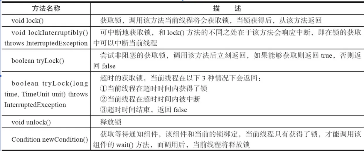 Lock实现提供比使用synchronized方法和语句可以获得的更广泛的锁定操作。 它们允许更灵活的结构化,可能具有完全不同的属性,并且可以支持多个相关联的对象Condition 。在Lock接口出现之前,Java程序是靠synchronized关键字实现锁功能的,而Java SE 5之后,并发包中新增了Lock接口(以及相关实现类)用来实现锁功能,它提供了与synchronized关键字类似的同步功能,只是在使用时需要显式地获取和释放锁。拥有了锁获取与释放的可操作性、可中断的获取锁以及超时获取锁等多种synchronized关键字所不具备的同步特性。