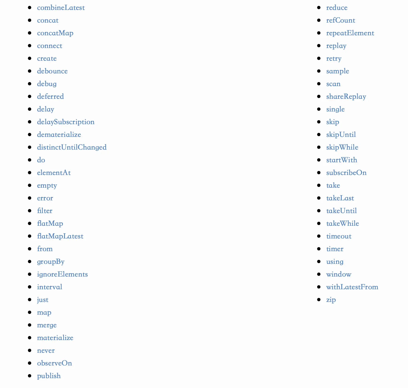 在RxSwfit 学习笔记(一)登录校验我们提到的案例中,我们有用到几个操作符map、combineLatest,这两个就是操作符。