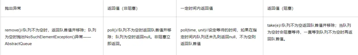 第二种处理 poll()//队列不为空时返回队首值并移除;队列为空时返回null。非阻塞立即返回。见上面