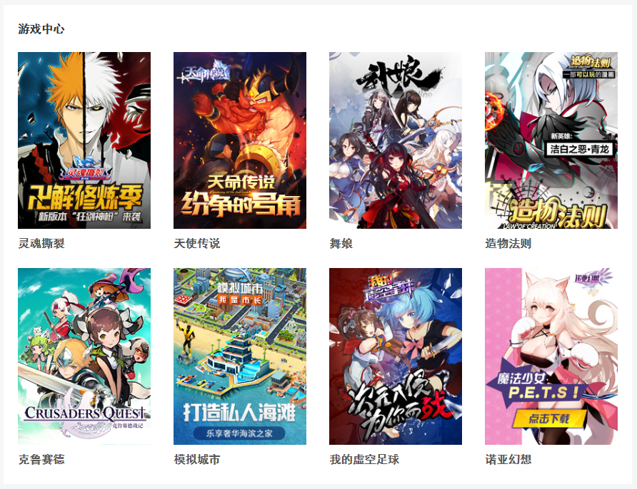 同理,右侧的游戏中心也是这样的一个思路,也是需要发送ajax请求,获取数据,来渲染页面,代码如下: