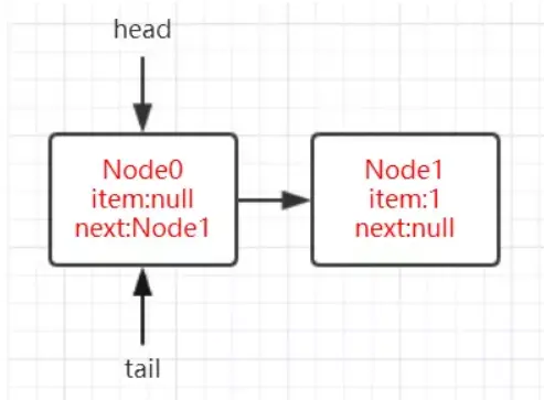 //初始化时首结点与尾节点是一致的,因为没有值。
