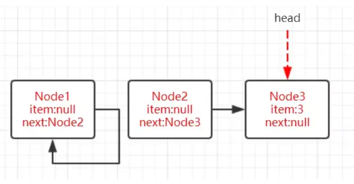 该方法主要是通过casHead将队列的head指向Node3,并且通过 h.lazySetNext将Node1的next域指向它自己。最后在第7行代码中返回Node2的值。此时队列的状态如下图所示