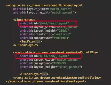 private View mHeadView; private NewNestedScrollView mBodyView; void init(){ mHeadView = findViewById(R.id.head_layout);//view为head mBodyView = findViewById(R.id.body_layout); }