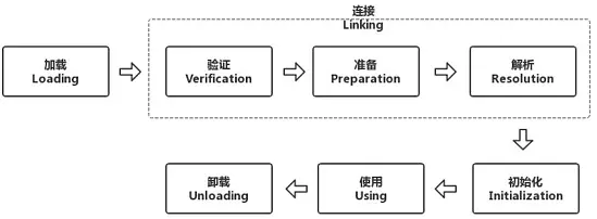 其实一个类从.class文件被加载到内存到从内存中卸载,整个生命周期一共经过以下几个阶段: