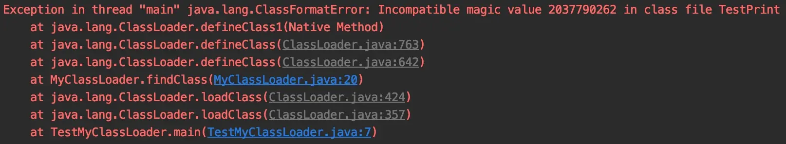 // 父类加载器没有查找到该类,则调用自身findClass方法查找加载