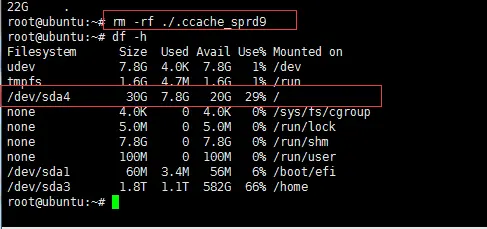 编译Android 源码时候莫名其妙的报错,各种查找验证发现代码没问题,使用tab自动补全功能 报-bash: cannot create temp file for here-document: No space left on device,于是使用df 看一下根目录爆满。猜想肯定跟空间爆满有关。