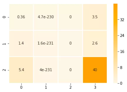 ax = sns.heatmap(annotations, annot=True, cmap=sns.light_palette(“orange”, as_cmap=True),