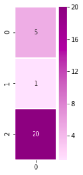 annot=True, cmap=sns.light_palette(“purple”, as_cmap=True), linewidths=1)结果如下: