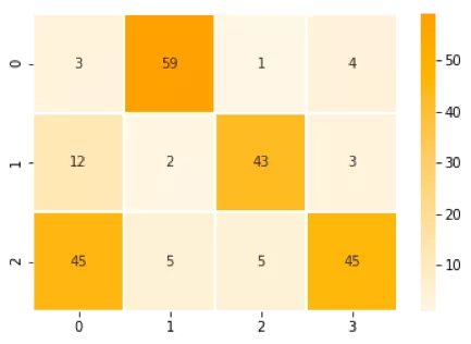 annot=True, cmap=sns.light_palette(“orange”, as_cmap=True), linewidths=1)
