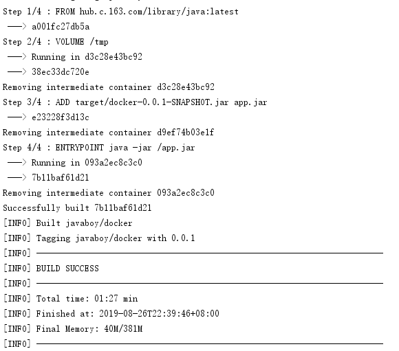 接下来对项目进行打包,打包完成后,项目会自动构建成一个镜像,并且上传到 Docker 容器中,打包方式如下: