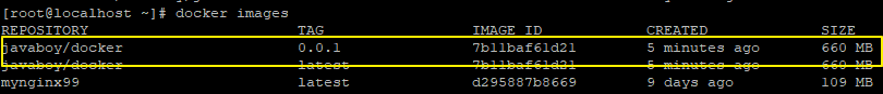项目打包成功之后,我们就可以在 Docker 容器中看到我们刚刚打包成的镜像了,如下: