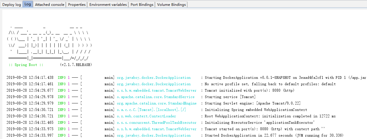 如此之后,我们的 Spring Boot 项目就算顺利发布到远程 Docker 容器中了。
