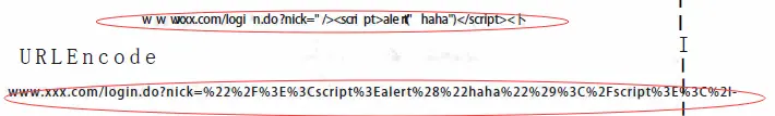攻击者可以对该URL采用URLEncode, 如图3-2所示,以迷惑用户,让它看起来像是一个正常的推广链接,并且以邮件群发或者其他形式进行推广,一旦用户点击,脚本将在客户端执行,对用户造成危害。