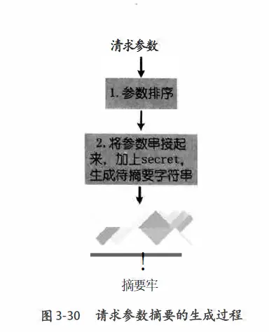 请求的参数需要先排好序,服务端与客户端需要事先约定好排序的方式。排好序后,将参数名称与参数值串起来,加上约定好的secret, 生成待摘要的字符串,最后使用如MD5之类的摘要算法生成摘要串。当然,摘要算法也需要事先约定好。
