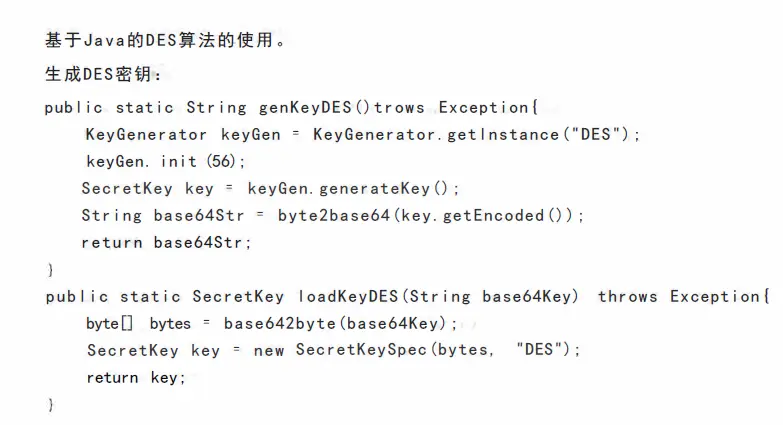 DES算法属于对称加密算法,明文按64位进行分组,密钥长64位,但事实上只有56位参与DES运算(第8、16、24、32、40、48、56、64位是校验位,使得每个密钥都有奇数个1)'分组后的明文和56位的密钥按位替代或交换的方法形成密文。